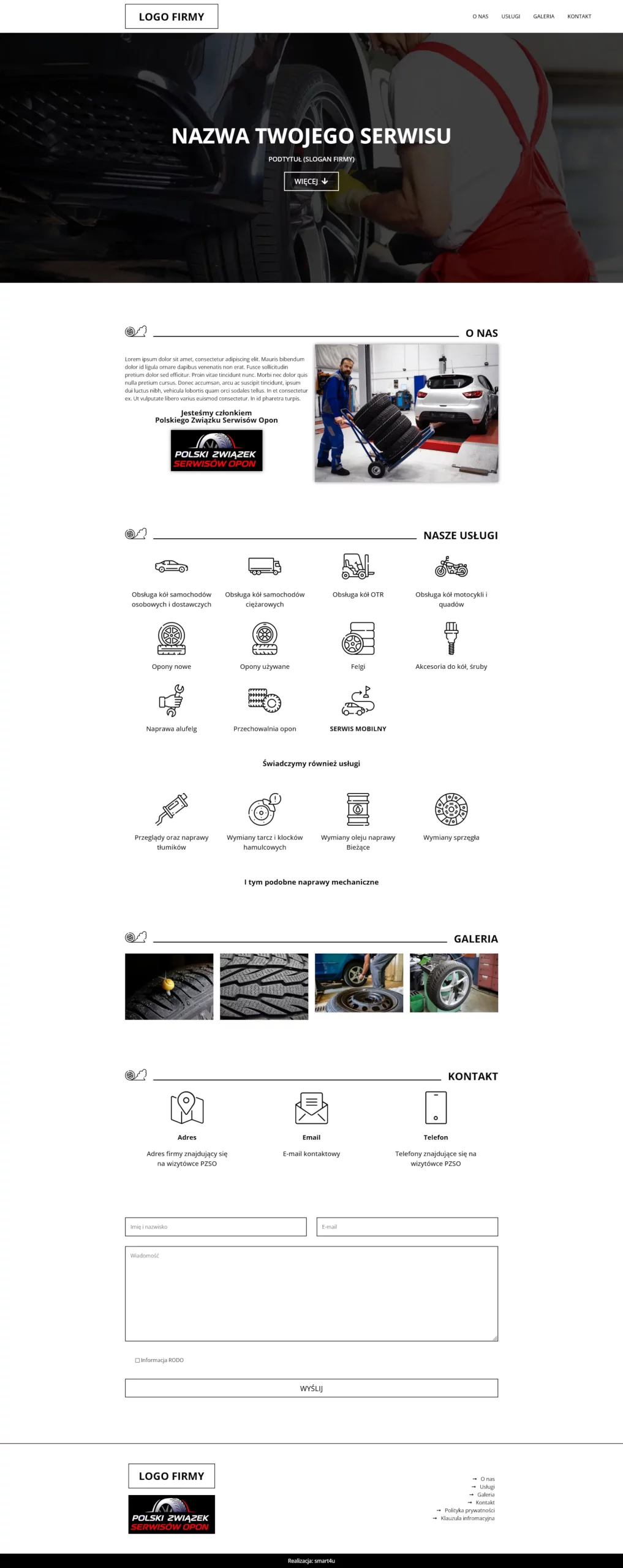Opis firmy znajdzie się w sekcji "O nas"